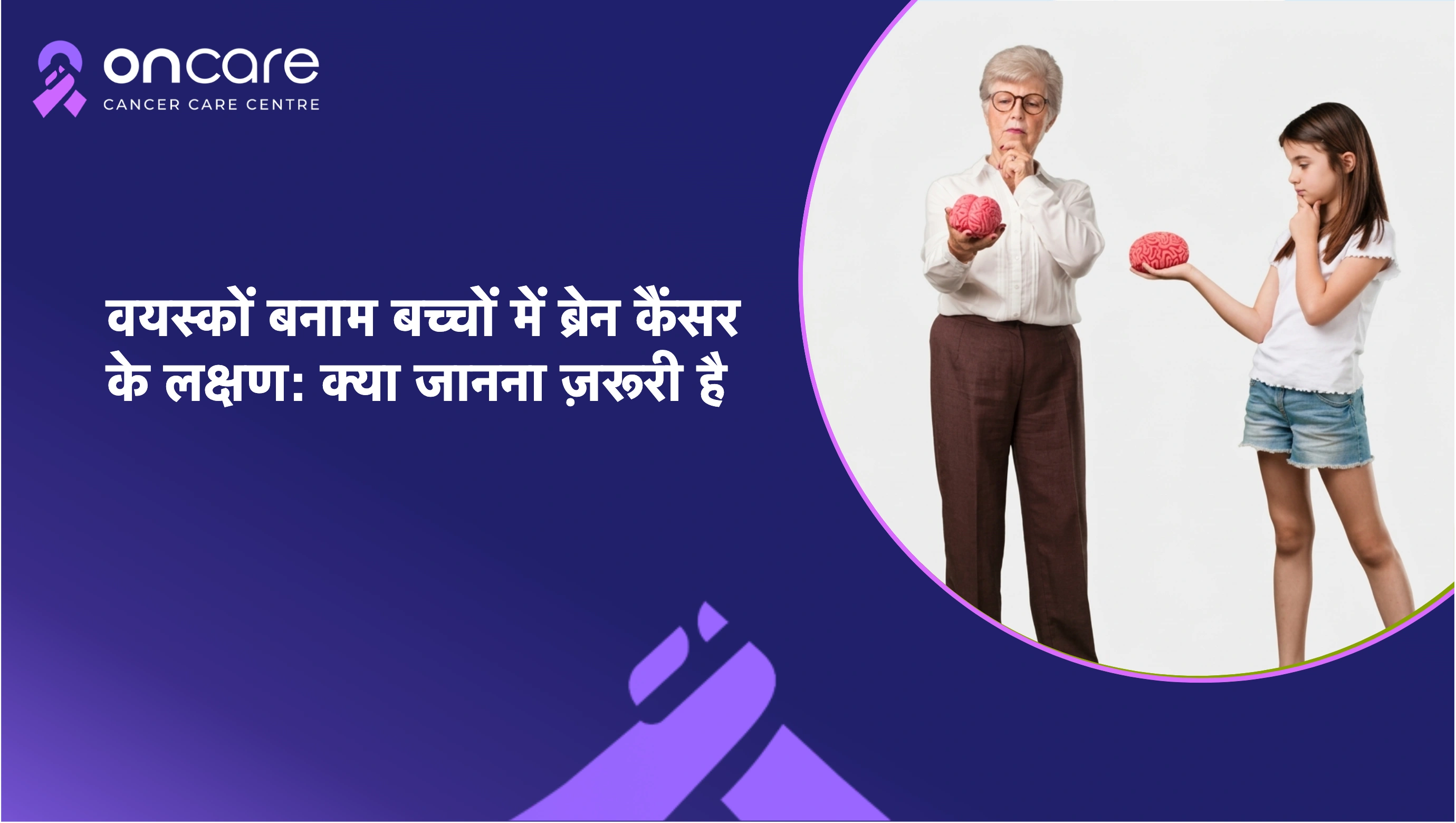 वयस्कों और बच्चों में ब्रेन कैंसर के लक्षण, संकेत और इलाज जानें। लगातार सिरदर्द, उल्टी या दौरे नज़रअंदाज न करें। Oncare Cancer Hospital से आज ही परामर्श लें।