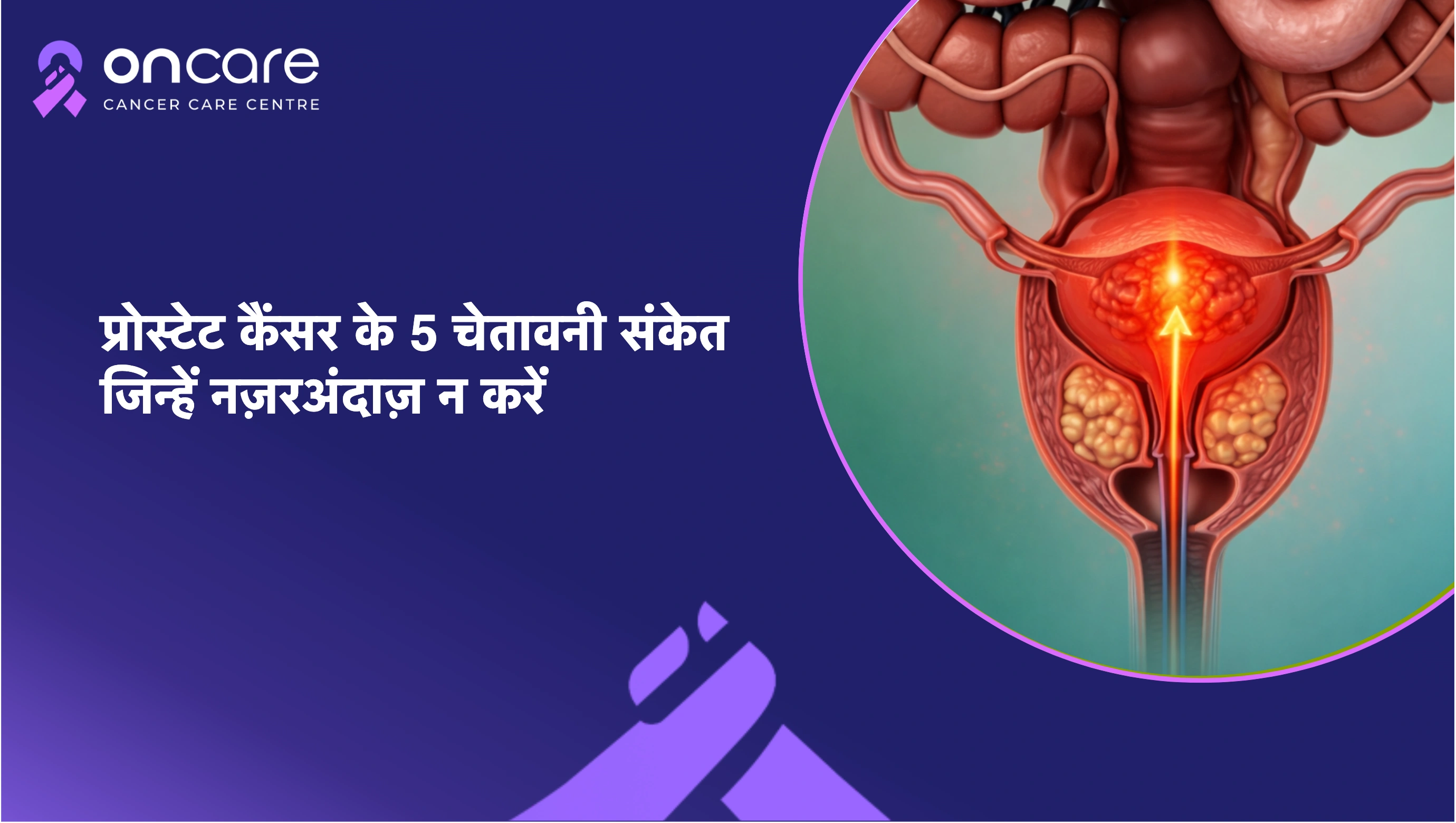 पुरुषों में प्रोस्टेट कैंसर के 5 शुरुआती संकेत - पेशाब में समस्या, रक्त आना, यौन समस्याएँ। समय पर जांच और Oncare Cancer Hospital से विशेषज्ञ सलाह लें।